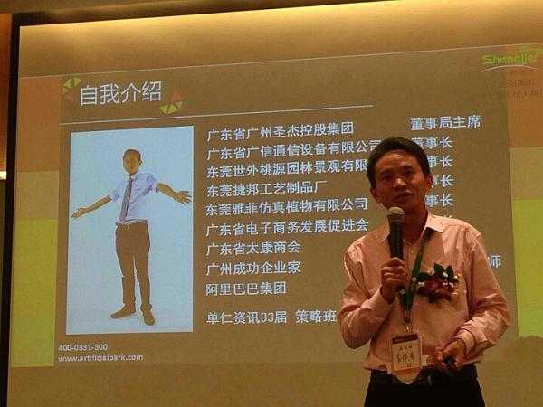 第二个登台的是俗称疯人院院长的广州圣杰集团李伟清董事长!他在很多不懂他的人眼里是个“神经病”,可是在我们牛商眼里他是富有激情的企业家,不折不扣的网络神人!他通过系统学习单仁资讯的课程,不断优化自己的团队和企业,用互联网的思维整合上下游产业链,打造品牌,短短六年时间从一个5人网络团队都凑不齐的仿真塑料植物小公司到十六家分公司200多个业务员的酒店配套用品集团公司,通过网络接到上海世博会俄罗斯馆的独家订单,这不是神人是啥?!