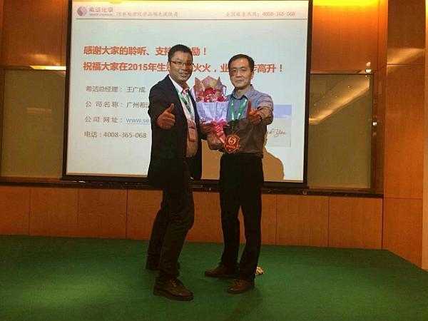 第六位登台的是我们的免费优化男神广州辉彩印花材料公司的负责人刘海辉。免费优化男神的称号怎么来的呢?!主要是刘总分享的干货太多了,神器层出不穷!他在学习网络营销后,勤奋钻研,全心投入,通过免费优化把“印花材料”“韩国胶珠”“印花颜料”等关键词做到百度首页,让公司网站排名稳居百度快照首版首页,甚至前几页都是他的辉彩网站,最终2014年一个月超越2013年全年的业绩!免费男神用技术站好网络位置让对手无路可走!