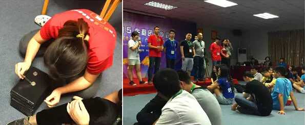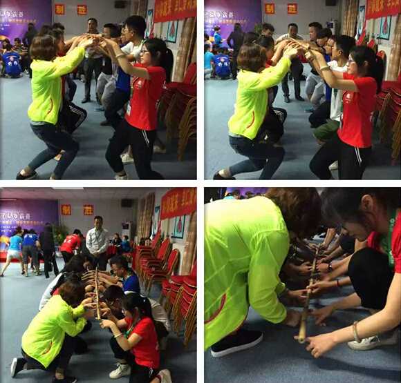 上图为同心杆游戏体验, 通过游戏体验,锻炼团队的协作、用心、专注、同心的能力,自认为5分钟就可以完成游戏的团队,20分钟之后却只有一个小组完成