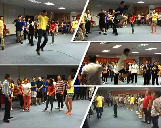 上图为“一个都不能少”跳绳游戏体验, 挑战78个参与者在1个半小时内按规则跳绳,再次激发团队成员相信自己、讲究策略、团结一心、不抛弃不放弃的精神。最终,3个小时完成游戏体验,超越极限。让每个人都感觉到自信的力量和团队团结一致的重要性!