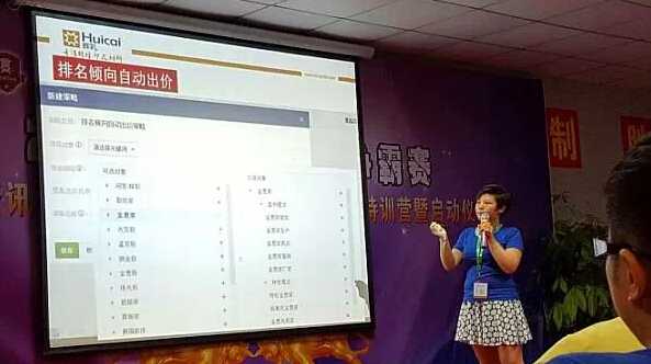 上图为广州辉彩印染材料有限公司推广专员王红分享付费推广与免费推广的技巧等干货分享。 从一个百度客服在辉彩成长为推广专员,她对百度推广的细致与极致令全场屏住呼吸认真听取分享。