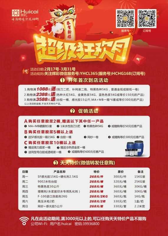 辉彩印花材料新年优惠活动通知