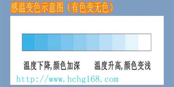 PS:辉彩特殊印花材料感温变色颜料本身是一个不稳定体系(稳定就难于变化),所以其耐光,耐热,耐老化等性能远不及普通颜料,在使用中应加以注意。感温变色颜料的耐光性较差,在强烈阳光下暴晒下会很快褪色失效,因此其只适合在室内使用。应避免强烈阳光和紫外灯光的照射,这样有利于延长变色颜料的使用寿命。