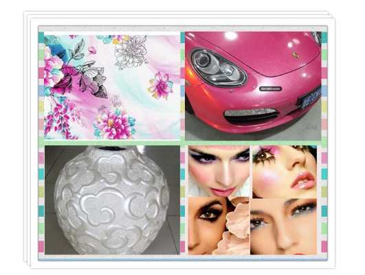 珠光颜料具有金属颜料的闪光效果,又能产生天然珍珠的柔和色泽,可广泛应用汽车、摩托车、自行车涂料、粉末涂料、建筑涂料、珠光油墨、珠光皮革、珠光塑料制品、珠光化妆品、还可应用于造纸、印染、印花、橡胶、陶瓷\塑料、涂料、印刷、化妆品等应用领域,是当今色彩领域的新思路,使你的产品赋予更高的商品价值。