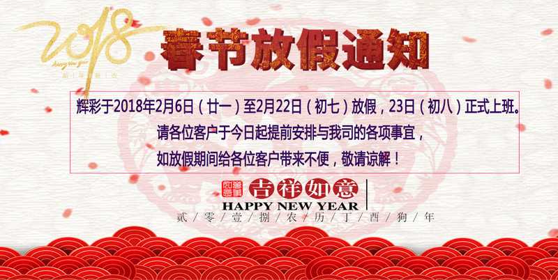 广州辉彩印花颜料有限公司全体员工提前祝各位新/老顾客:新春快乐!家庭幸福!