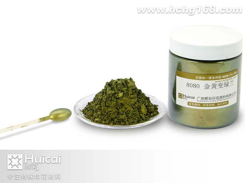 8080金黄变绿兰变色龙粉是经由微胶囊技术处理过的产品,外观为粉状,粒径在1~10μm之间,并具有耐高温、抗氧化等微胶囊所改质的特性。