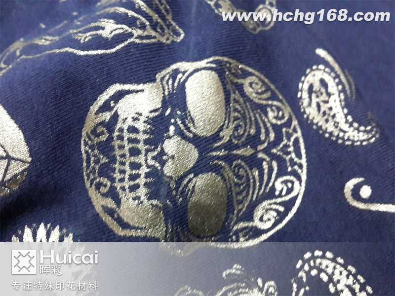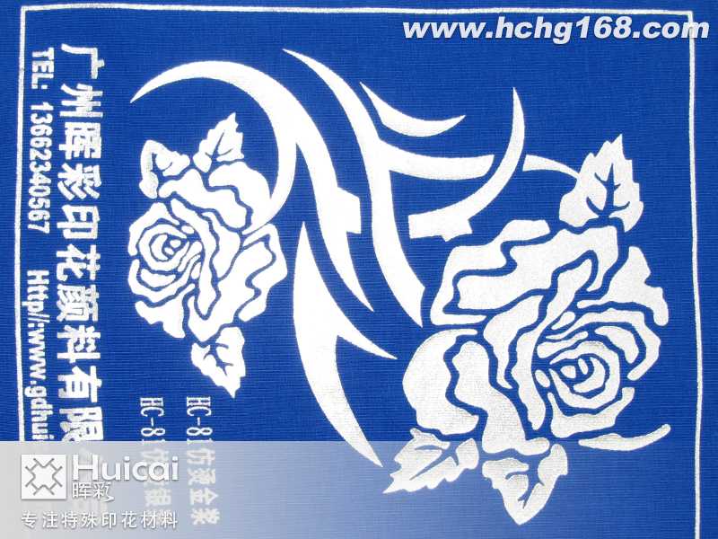辉彩可调色仿烫银浆又称为珍珠浆或者珠光浆,辉彩可调色仿烫银浆外观是银白色浆状,辉彩可调色仿烫银浆跟仿烫银浆的区别是可以直接印在织物上会反射出特殊的光泽效果。