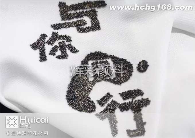 第一步: 先印辉彩印花材料的强力环保粘珠浆一次吹干打底,然后再印第二次时以胶珠的大小来确定印强力环保粘珠浆的厚度,或是印第三次强力环保粘珠浆以便留有足够的粘珠浆