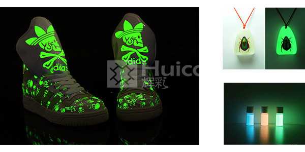 | 2、夜光粉是目前发光颜色最齐全的颜料,如常用的黄绿、蓝绿、天蓝、白色、绿色、粉红色、桃红色、橘红色、橙色、黄色、紫色等 |