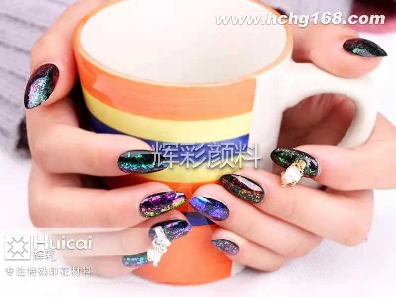变色龙颜料对人体无害,可与皮肤接触,在不同角度变化成不同颜色,有着梦幻般的色彩以及高镜面效果,完美的视觉效果赋予设计师无穷的创意灵感,使无限色彩得以无限释放,变色龙颜料它能够为美甲增添新鲜的动力和个性色彩。