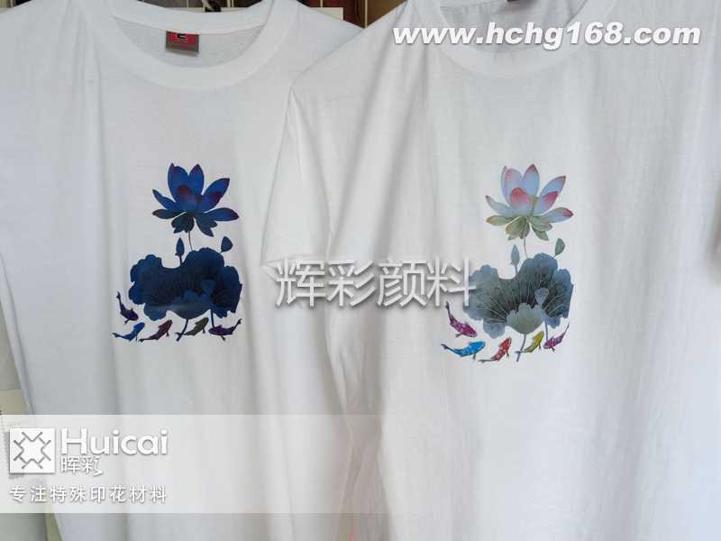随着温度的变化而发生颜色变化,这种主要是由于在服装印花材料中添加了服装感温变色颜料,这种温变粉是随着温度的改变而发生颜色的变化,颜色的变化种类比较多,变色的模式主要为透明色变为有色再到透明色,或者是有色变透明色再到有色。平时保持原来的颜色,当温度发生改变的时候,颜色也会随之发生改变,等温度恢复到原来的时候,颜色也会恢复。