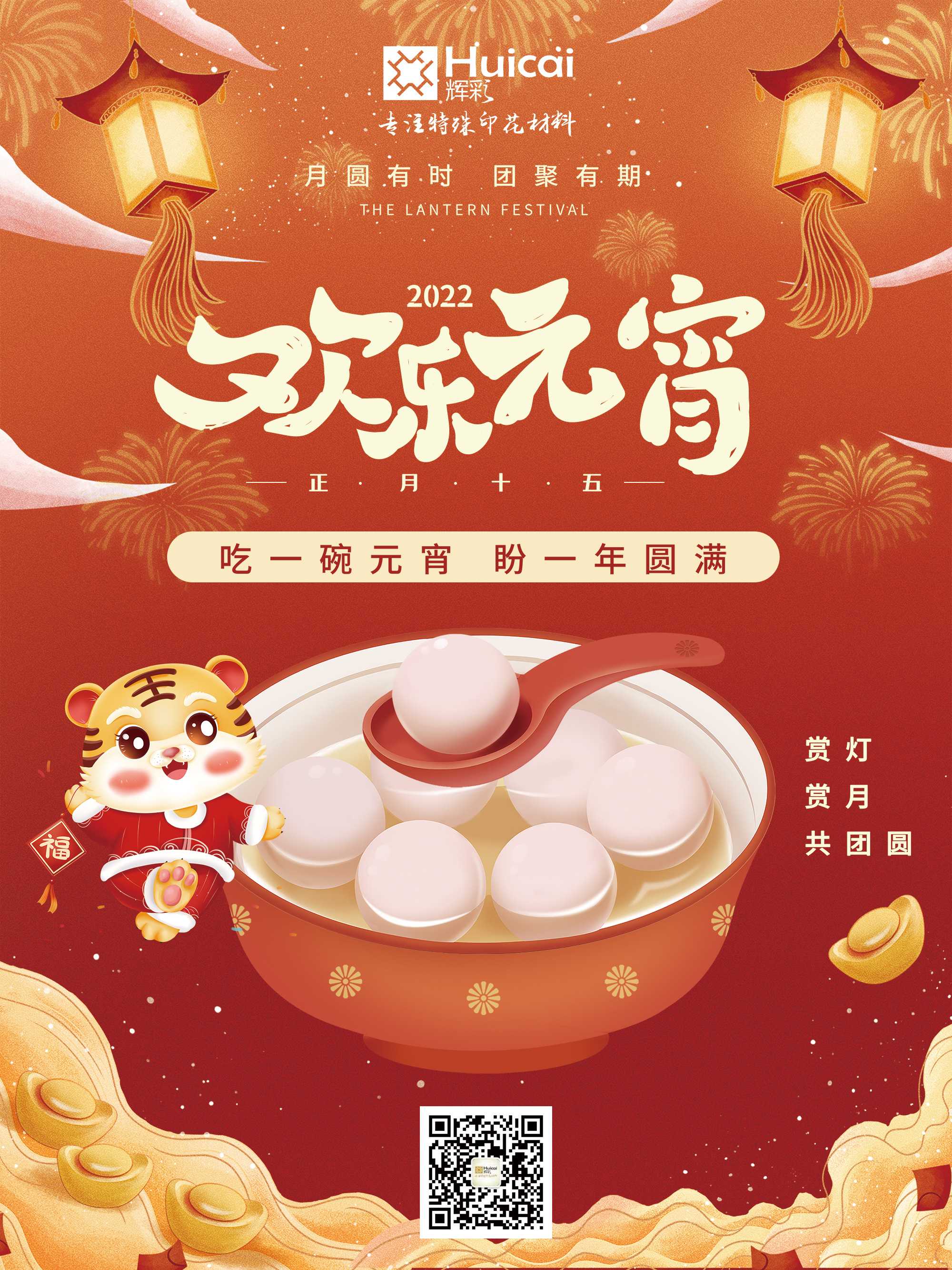 带着诚挚的祝福,辉彩特殊印花材料全体员工再次祝福大家元宵佳节快乐!好事如正月十五的月儿一样圆,好运如汤圆一样圆又圆,好日子如彩灯一样五彩缤纷!