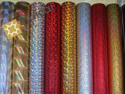 镭射烫金纸广泛应用于服装布料印花、烫印烟盒、酒盒、化妆品盒、礼品、茶盒、台历、贺卡等印刷包装上