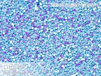 圆形金葱粉闪光片主要以喷撒的主式,用于纸,布,皮具等多种材料上,形成装饰或反光等特殊或醒目的效果。