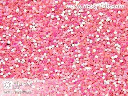 圆形金葱粉:又名圆形闪光片。包括幻彩片,镭射片、金片和银片等。主要材质有PETPVC两种材质。大小规格(size)由1.0mm10.0mm)。形状规则为圆形状,并有多种颜色可供选择。各种材质金葱粉可不同程度承受高温(由80*C,180*C,300*C不等) 。