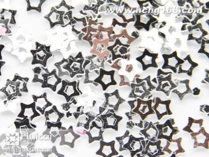 金葱粉:又名闪光片。包括铝质金葱粉,聚酯金葱粉,幻彩粉,镭射金葱粉等。有铝质,PET,PVC材质。大小规格(size)由1/2560、1mm)至1/83、0mm)。形状有六角形,四角形,长条针形和不规则形状,并有多种颜色可供选择。各种材质金葱粉可不同程度承受高温(由80*C,180*C,300*C不等) 。