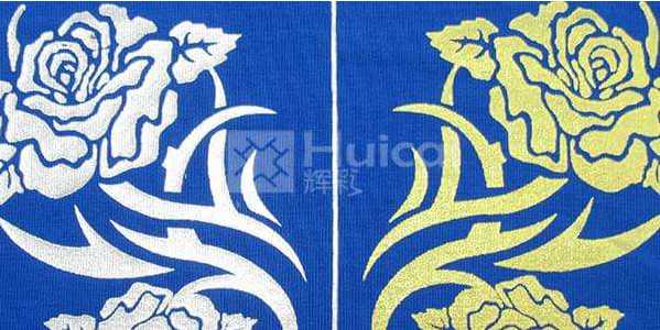 近年来随着印花行业的日益发展,仿烫银浆、仿烫金浆也开始越来越多人使用了。这两种发印花浆料是辉彩针对布料烫金浆开发的新产品,无需用金箔纸压烫,直接印制出来就能达到烫金纸的效果。