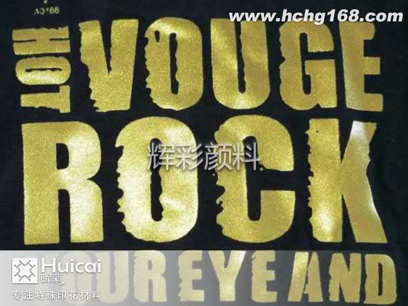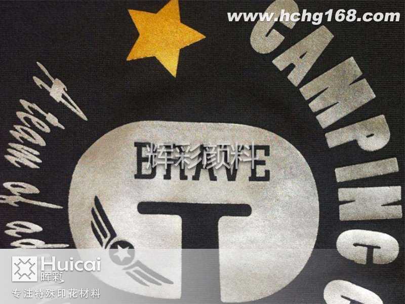 辉彩仿烫金浆、仿烫银浆高亮度,手感柔软,水洗牢度强(远超烫金牢度),操作简单,是一款特殊新型而环保的浆料。仿烫金印花是将一种类似珍珠闪烁光芒的物质印制在织物上,在日光或强光照耀下,发出珍珠般的光泽,点缀出光彩夺目的印花图案。