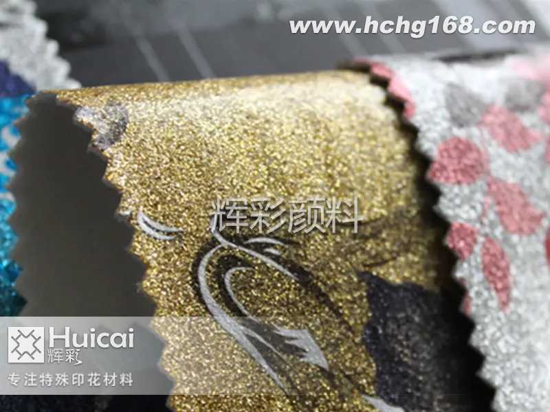 印花材料厂家在这里对于金葱浆的介绍就先介绍到这了,辉彩印花材料厂家主要生产特殊印花,转印材料、拔印浆、烫金浆、发泡浆、植绒浆、防升华浆、金葱浆等,广泛应用于服装及时设计行业、个性化旅行纪念品、工艺礼品行业、个性化室内装修、家用纺织品行业等领域。