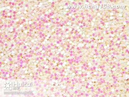 圆形金葱粉:又名圆形闪光片。包括幻彩片,镭射片、金片和银片等。主要材质有PET和PVC两种材质。大小规格(size)由1.0mm至10.0mm)。形状规则为圆形状,并有多种颜色可供选择。各种材质金葱粉可不同程度承受高温(由80*C,180*C,300*C不等) 。